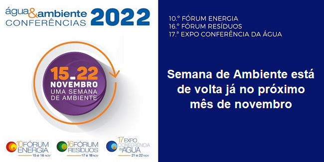Pelo segundo ano consecutivo, as três iniciativas organizadas pelo Jornal Água&Ambiente realizam-se ao longo de uma semana